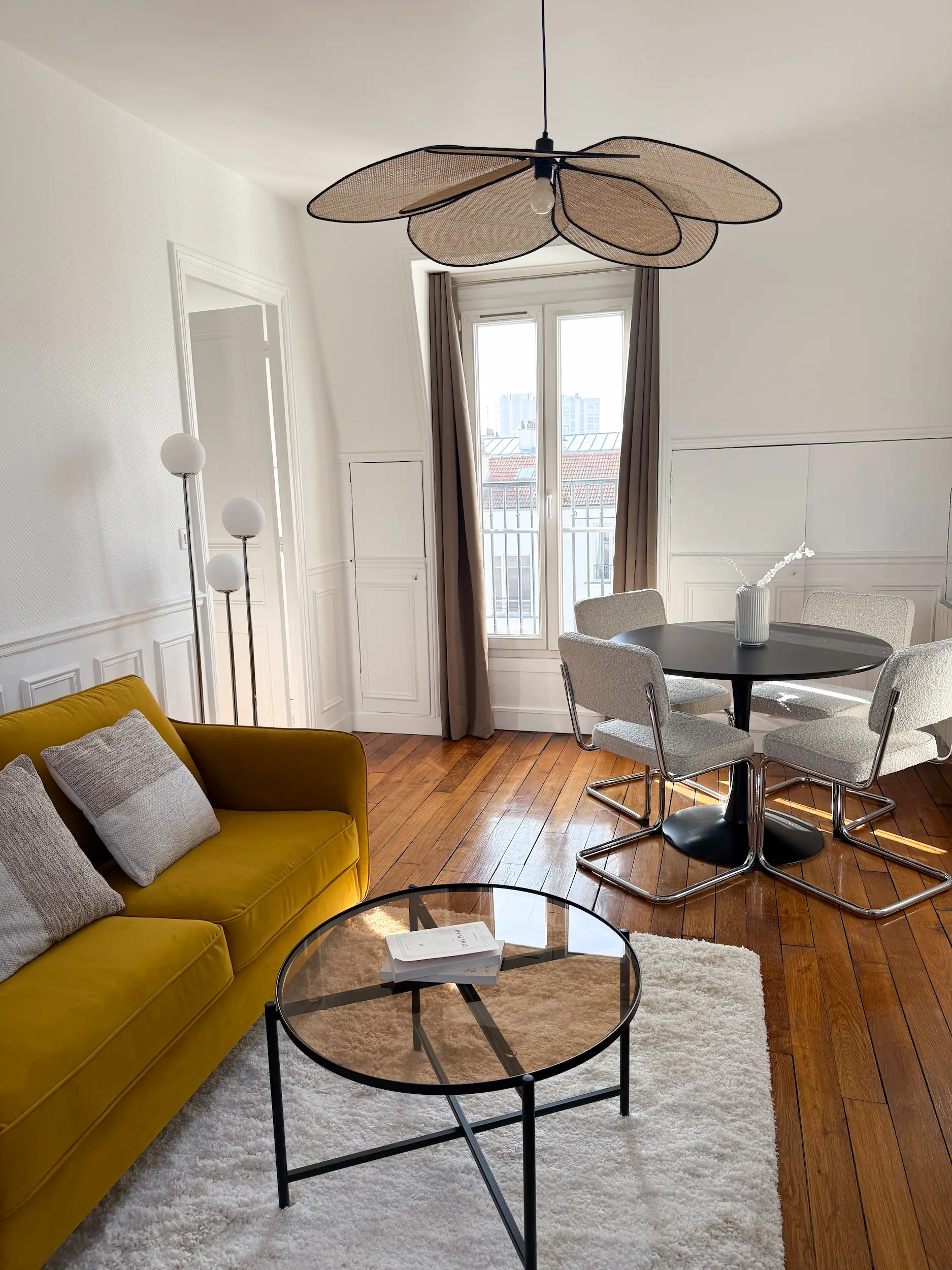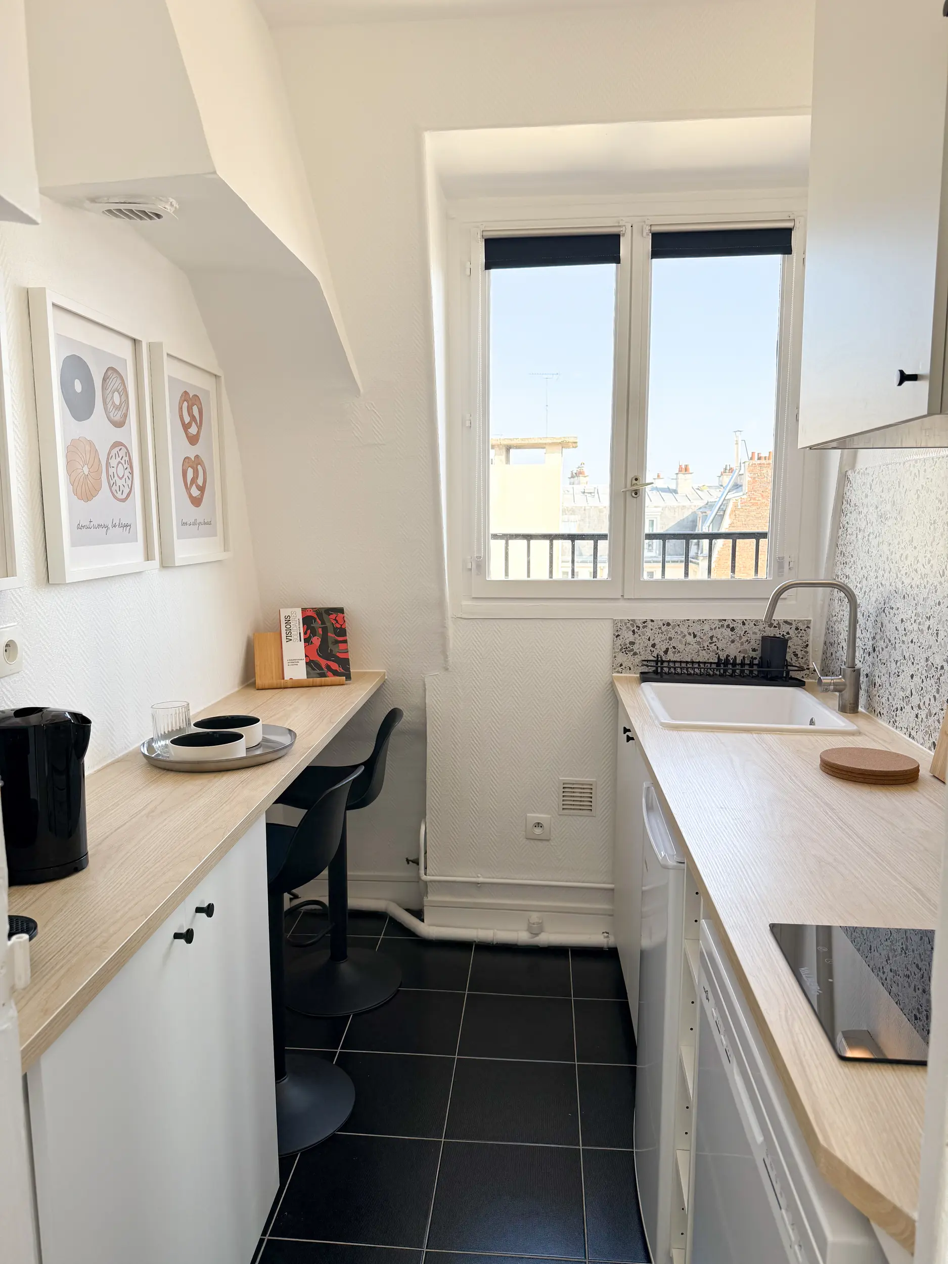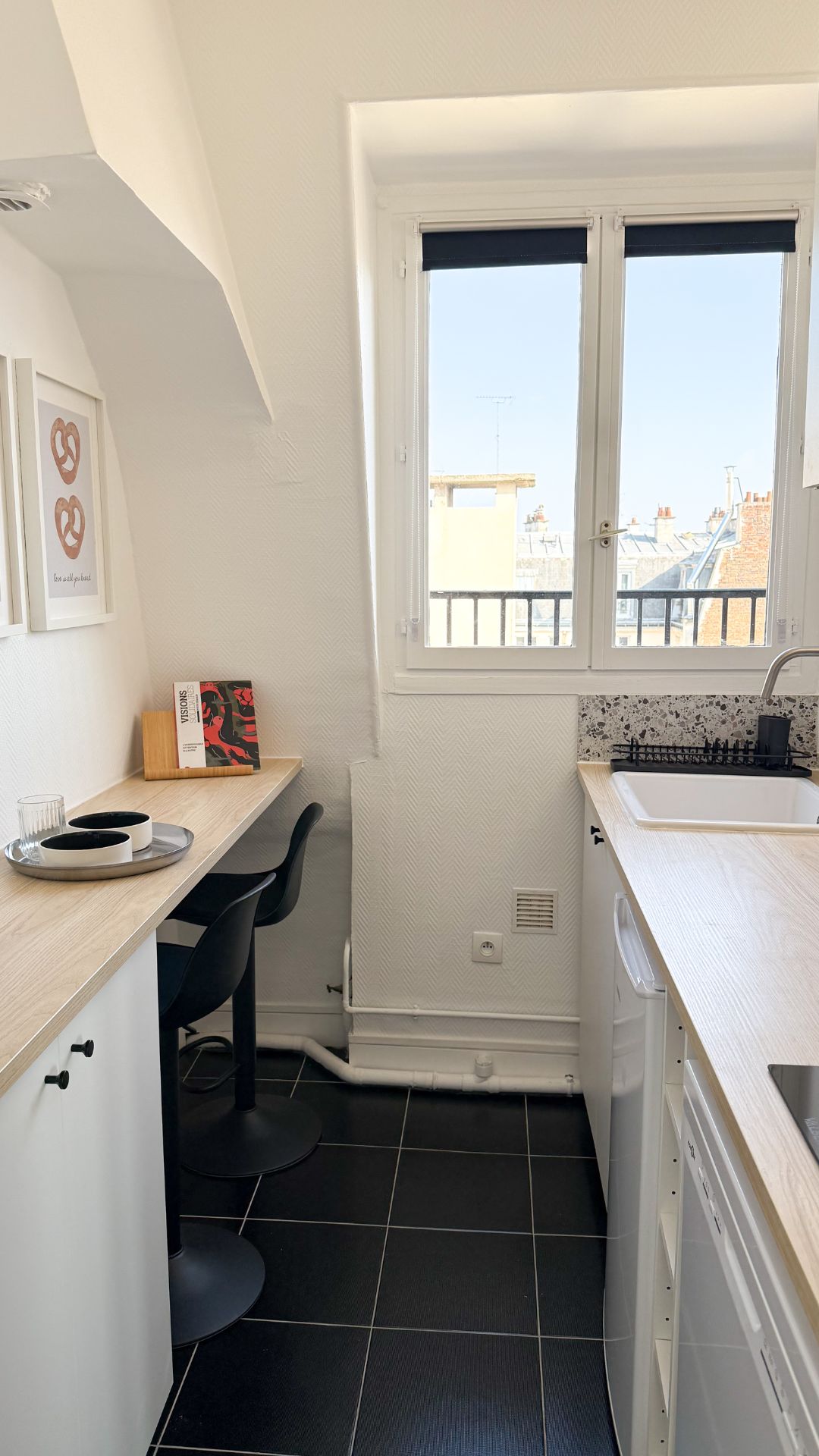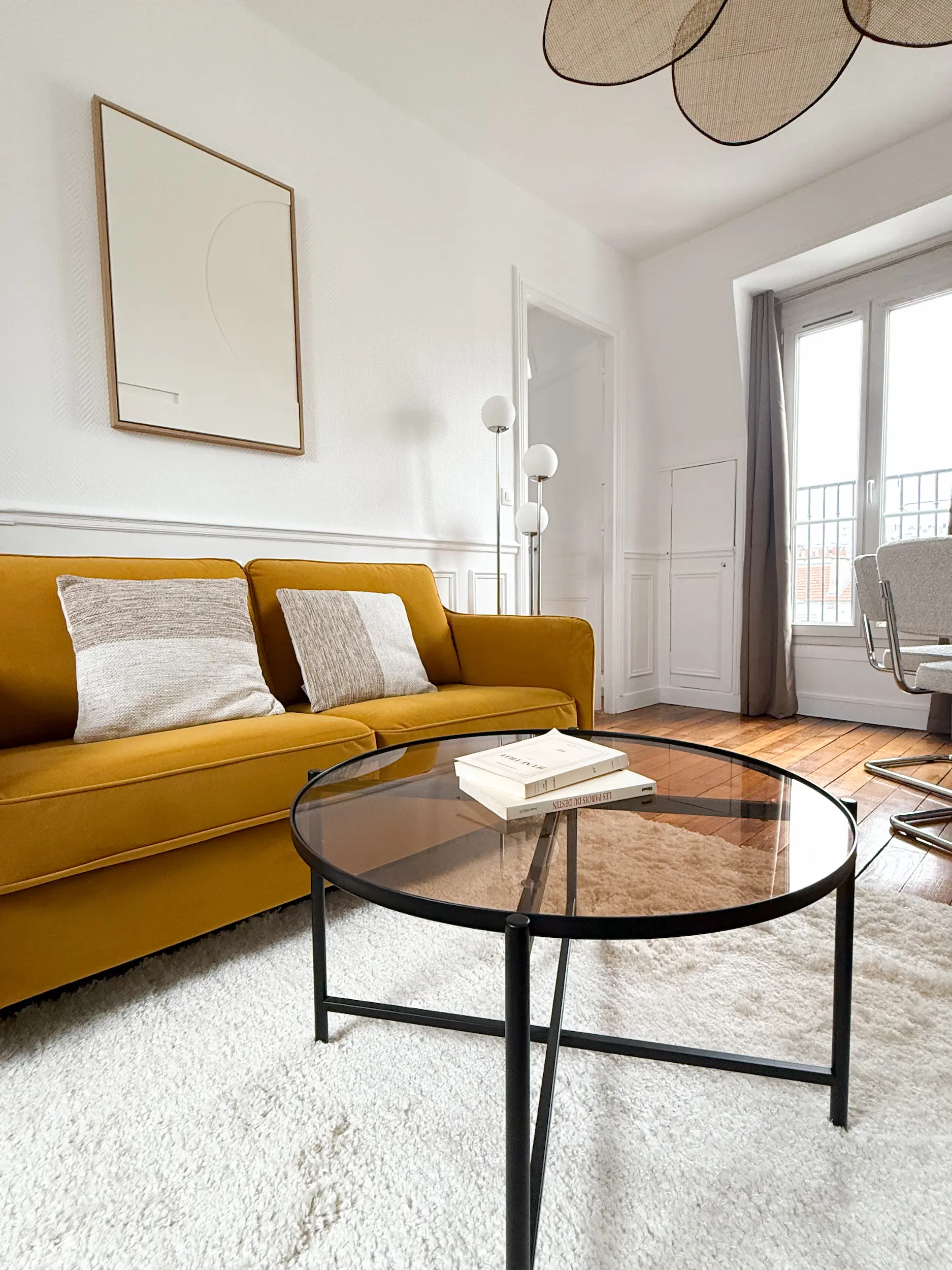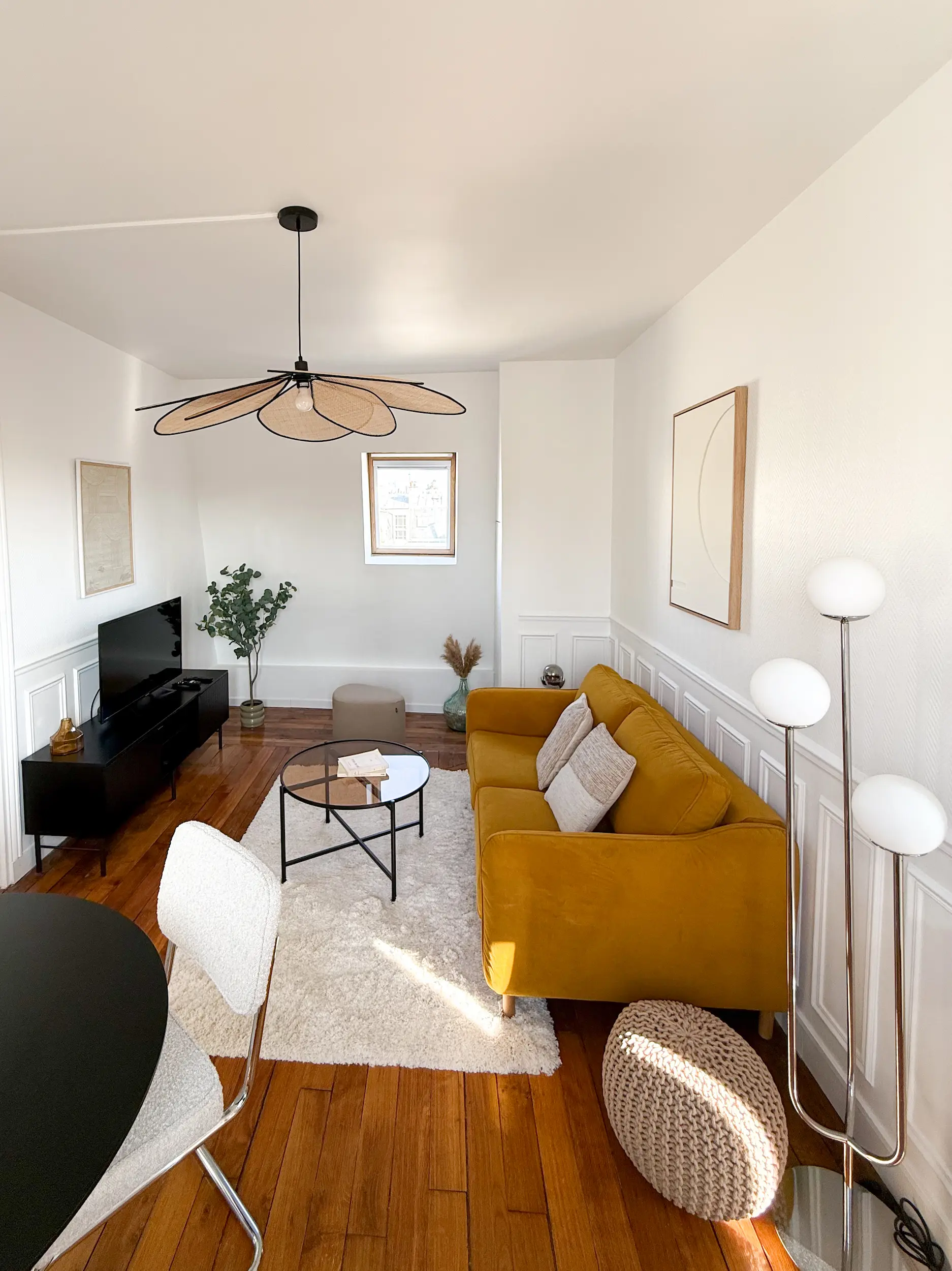 Situé en étage élevé dans le 14ᵉ arrondissement de Paris, cet appartement de 35 m² bénéficiait d’une belle luminosité, mais souffrait d’un cloisonnement inutile au cœur de la pièce principale.