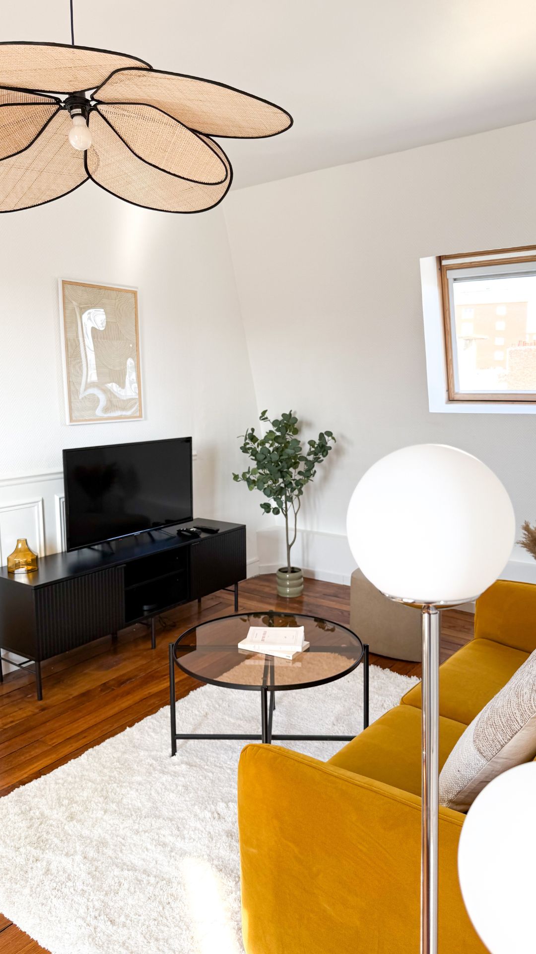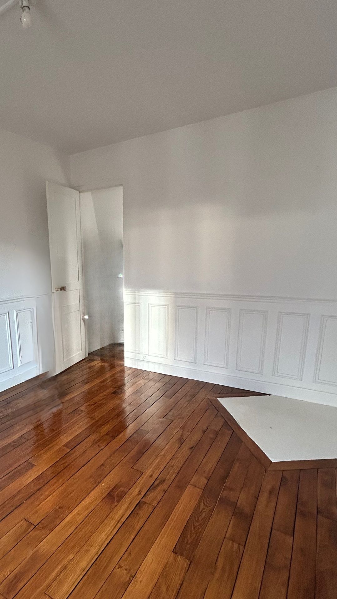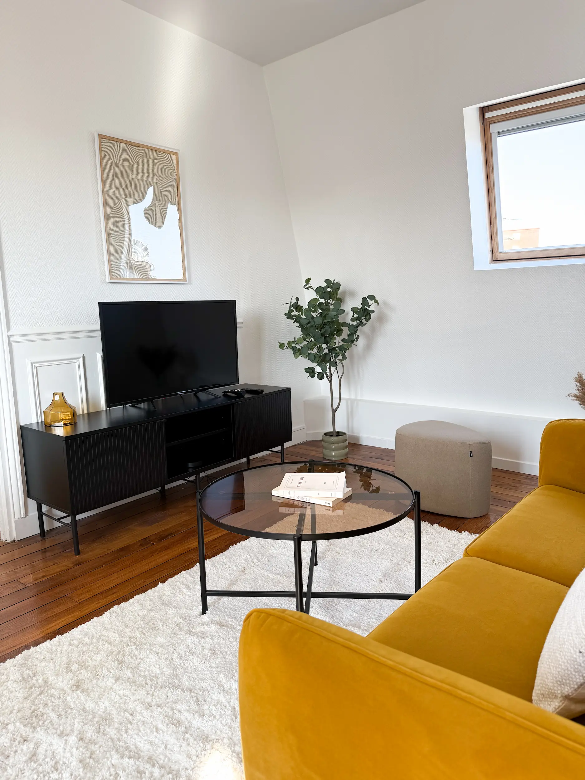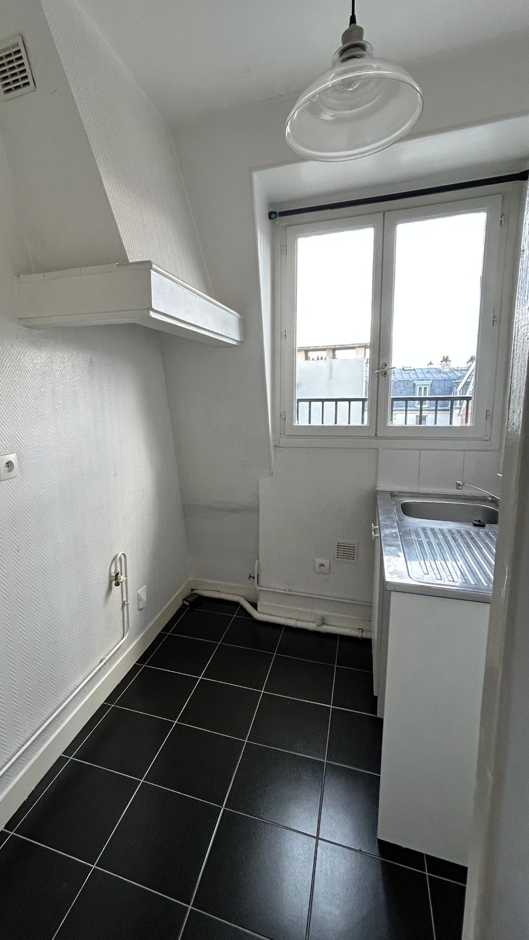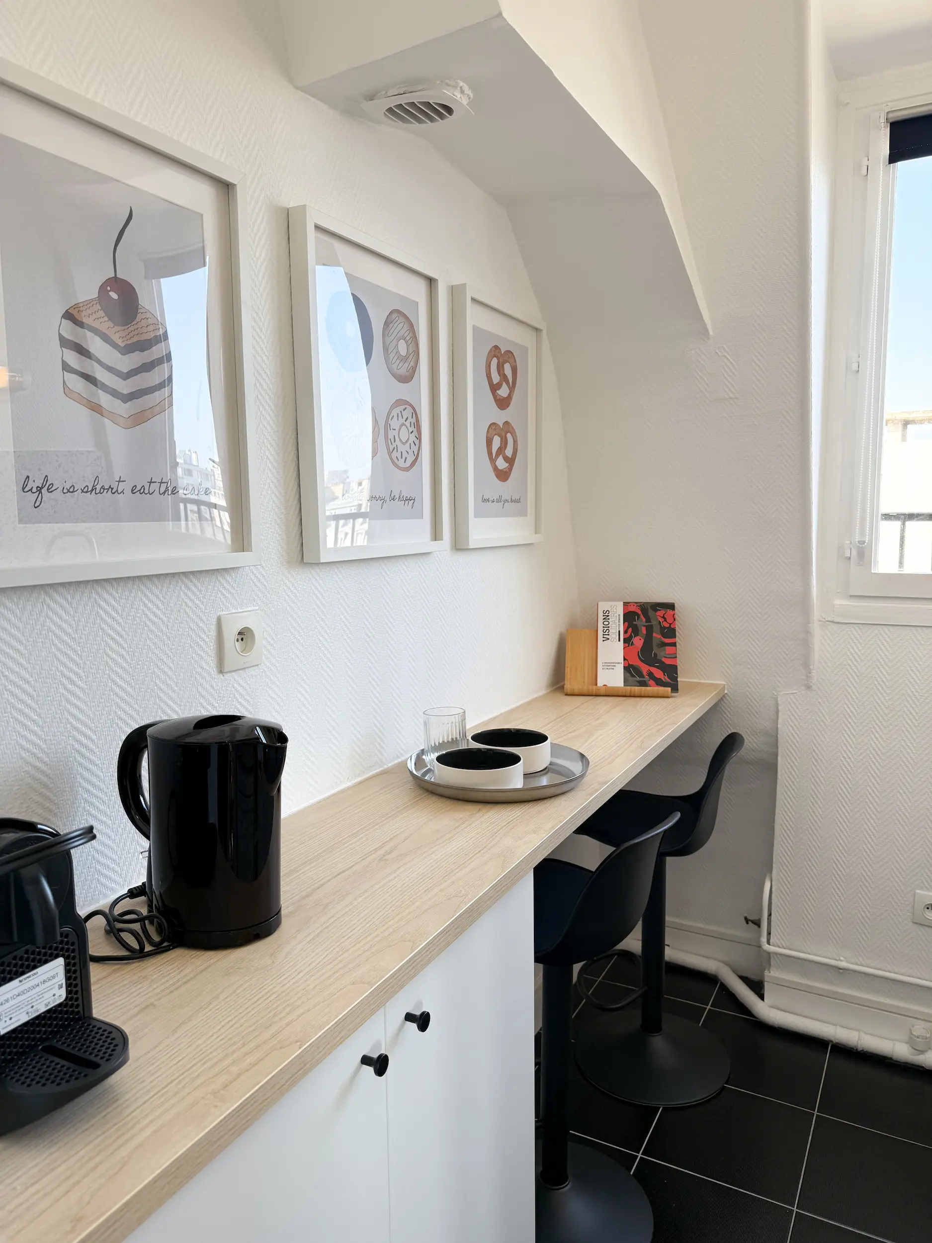 Situé en étage élevé dans le 14ᵉ arrondissement de Paris, cet appartement de 35 m² bénéficiait d’une belle luminosité, mais souffrait d’un cloisonnement inutile au cœur de la pièce principale.