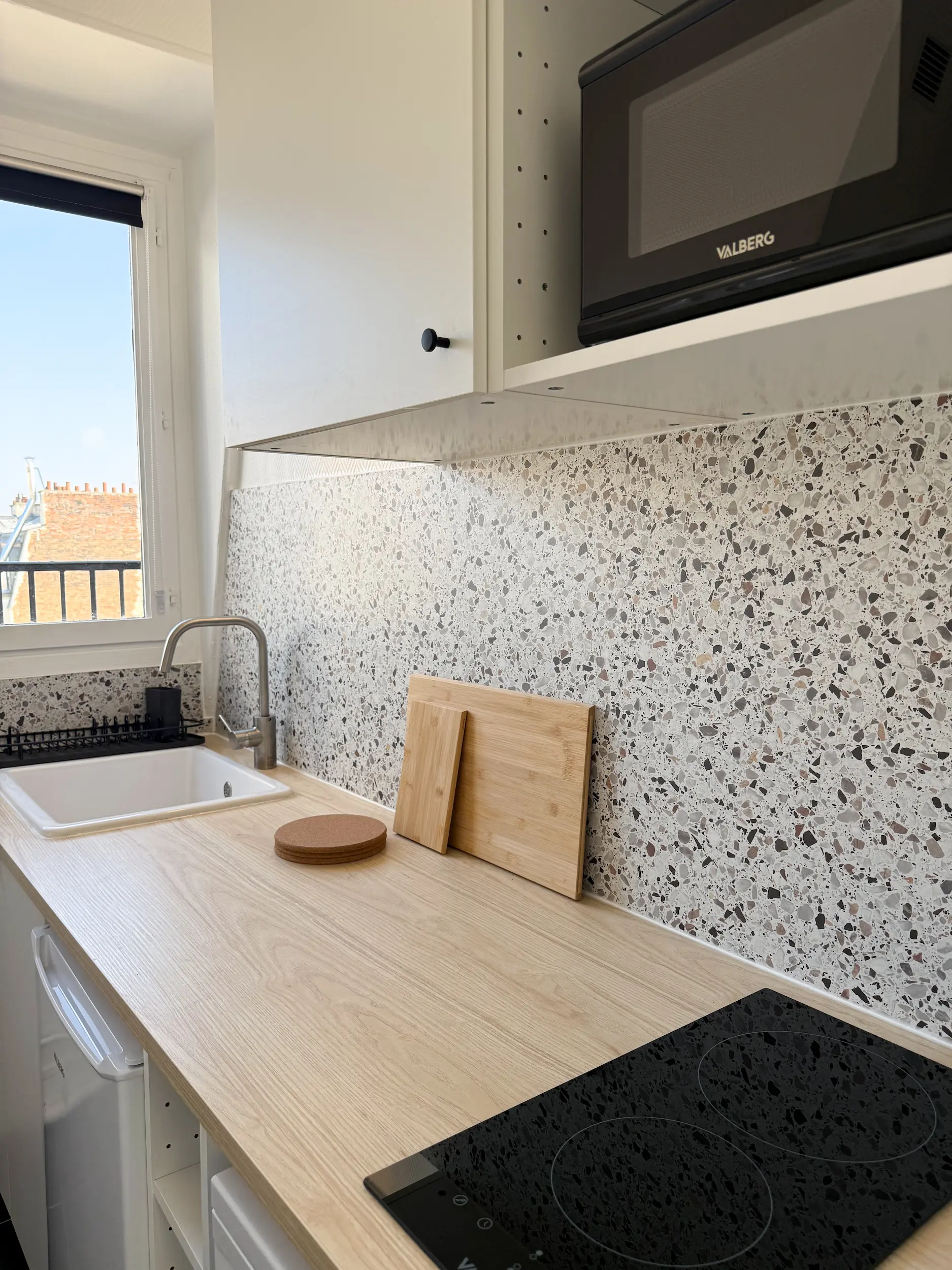 La rénovation a consisté à déposer une cloison existante, initialement destinée à dissimuler le chauffe-eau, afin de libérer les volumes, améliorer la circulation et renforcer la diffusion de la lumière naturelle. Cette intervention simple a profondément transformé la perception de l’espace.
