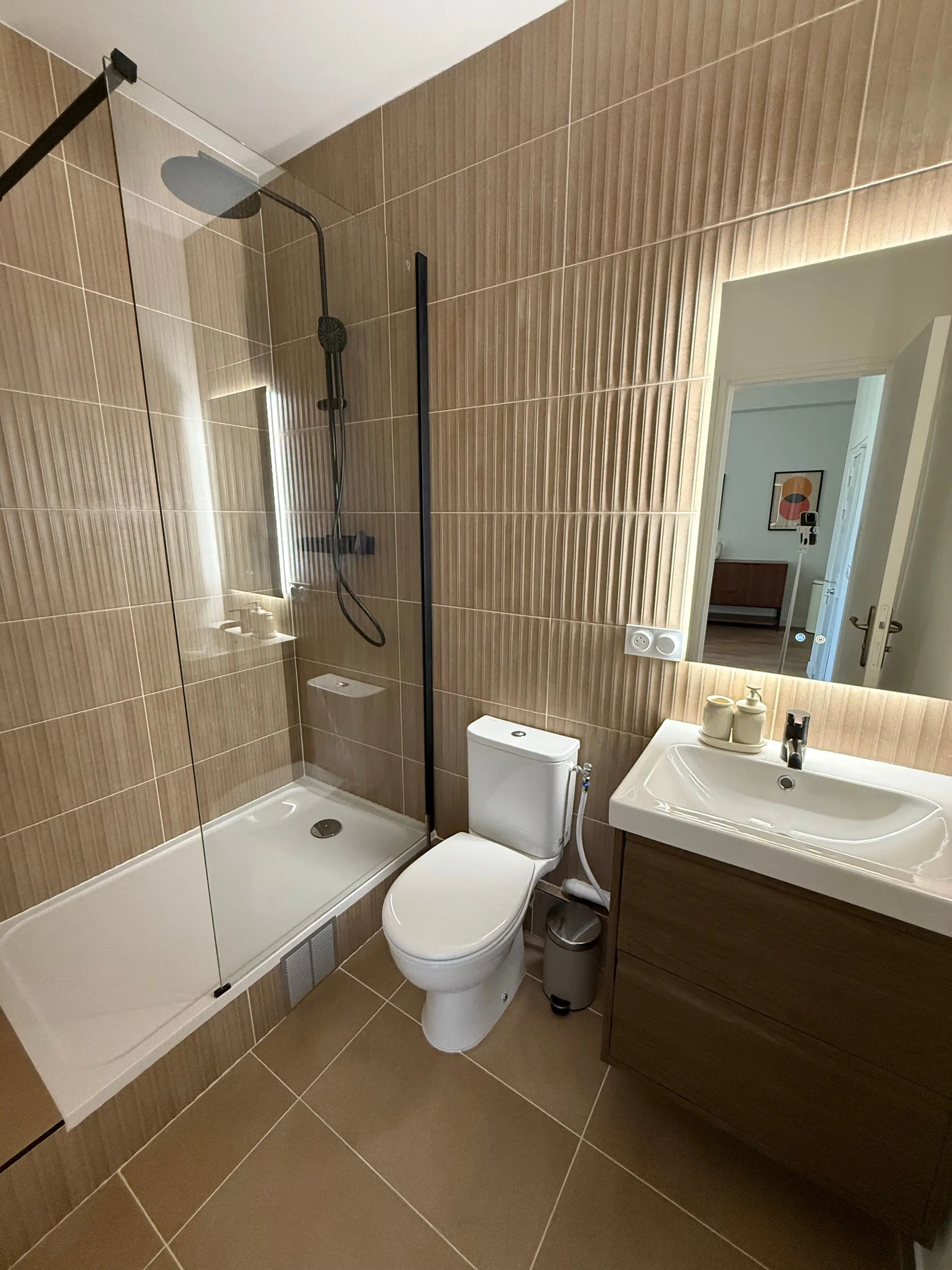 Situé au 1er étage d’un ancien duplex parisien, cet espace a été entièrement repensé dans le cadre de la création de deux logements indépendants destinés à la location courte durée.