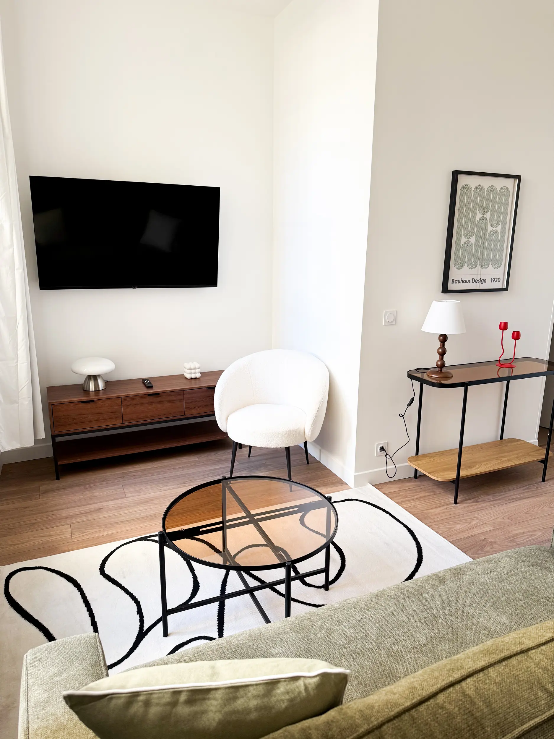 La rénovation a permis de transformer un plateau peu lisible en un deux-pièces lumineux de 43 m² : création d’une chambre, intégration d’une salle d’eau et ouverture de la cuisine sur le séjour pour fluidifier les usages et valoriser la lumière naturelle.