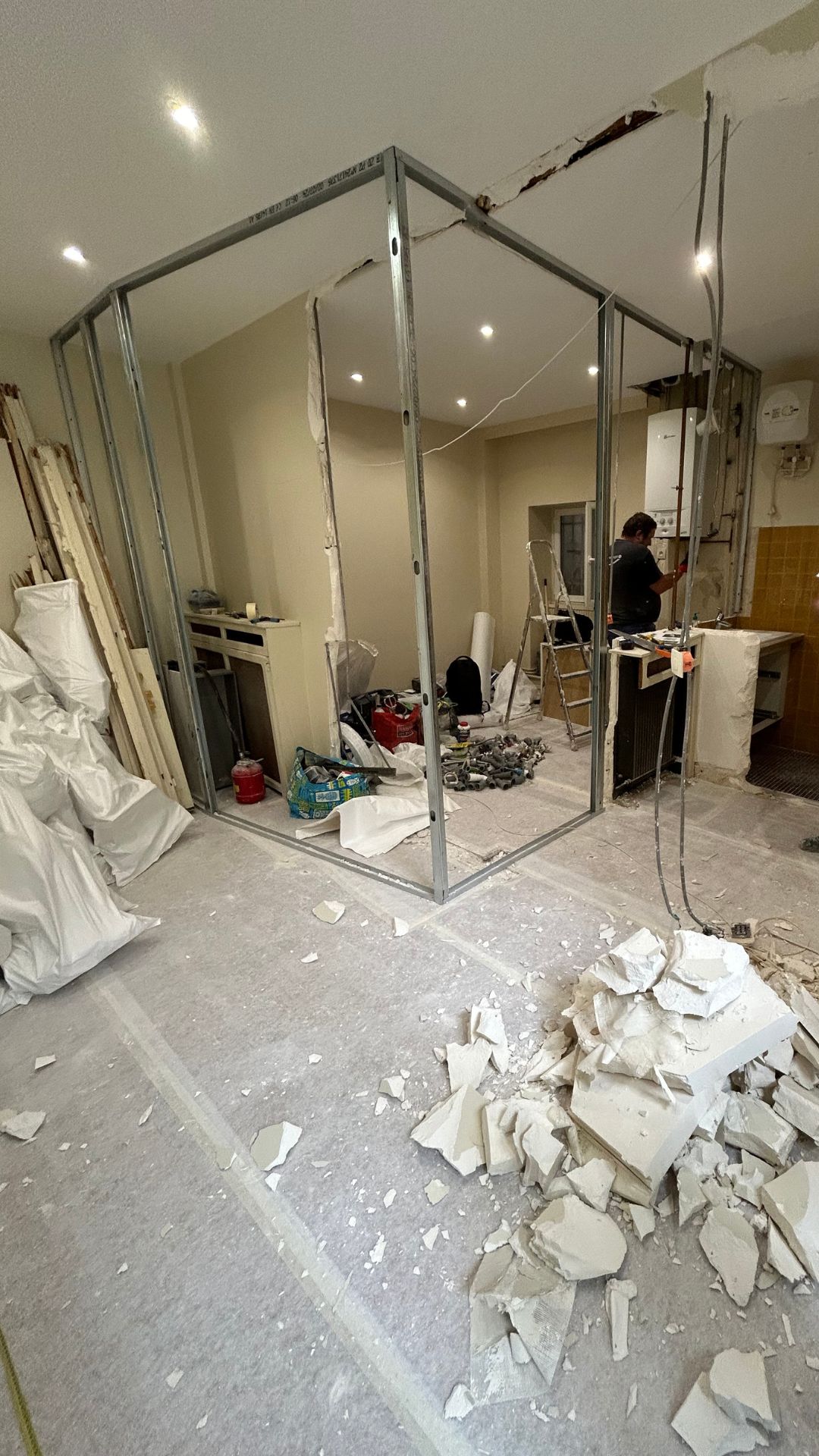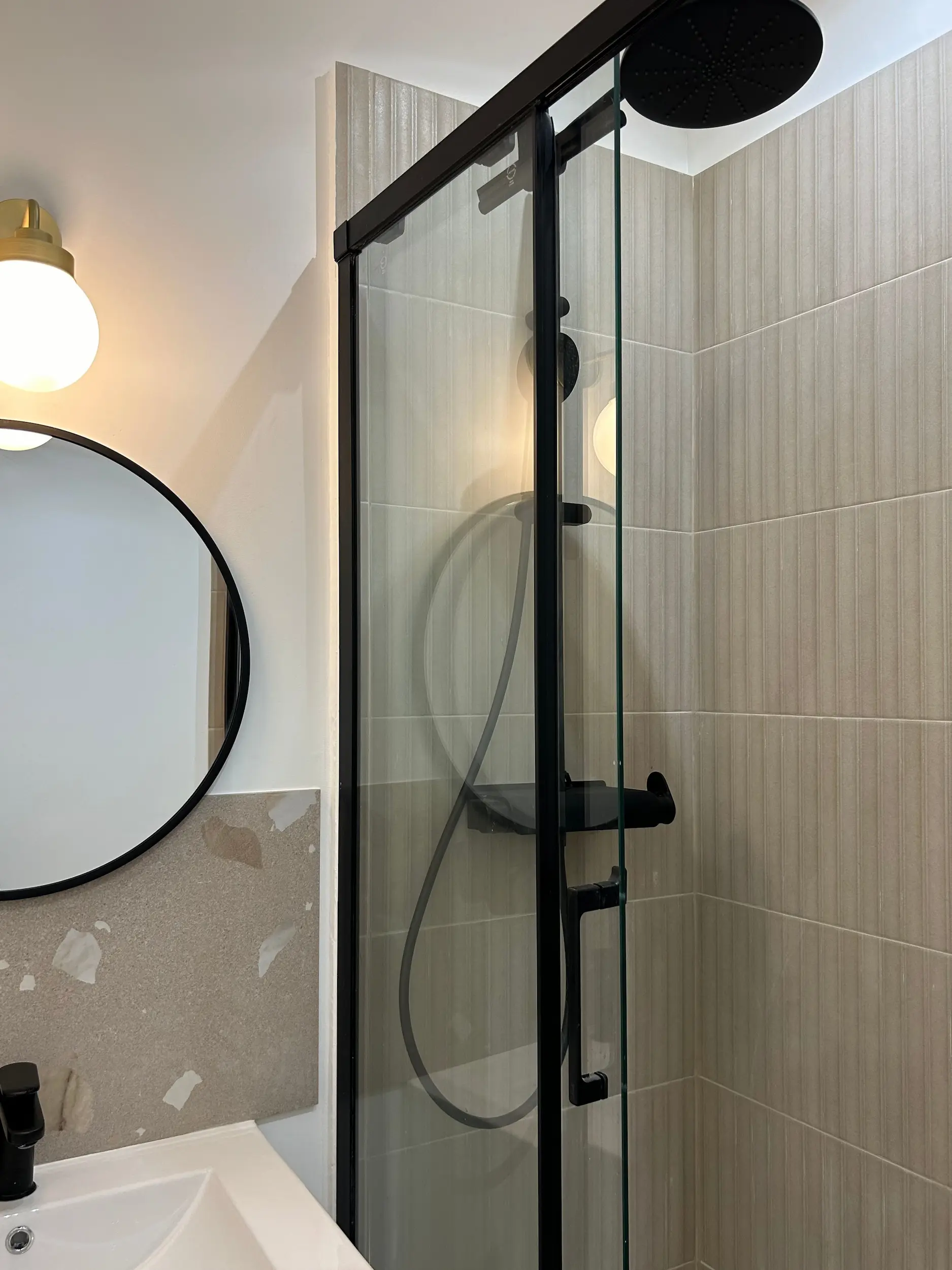 La principale contrainte du projet résidait dans un volume initial très ouvert, qu’il fallait structurer sans altérer la lumière naturelle apportée par la porte vitrée. L’enjeu : créer un véritable appartement tout en conservant une sensation d’espace et de clarté.